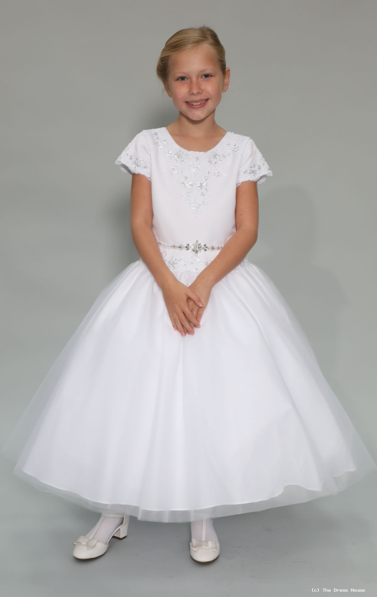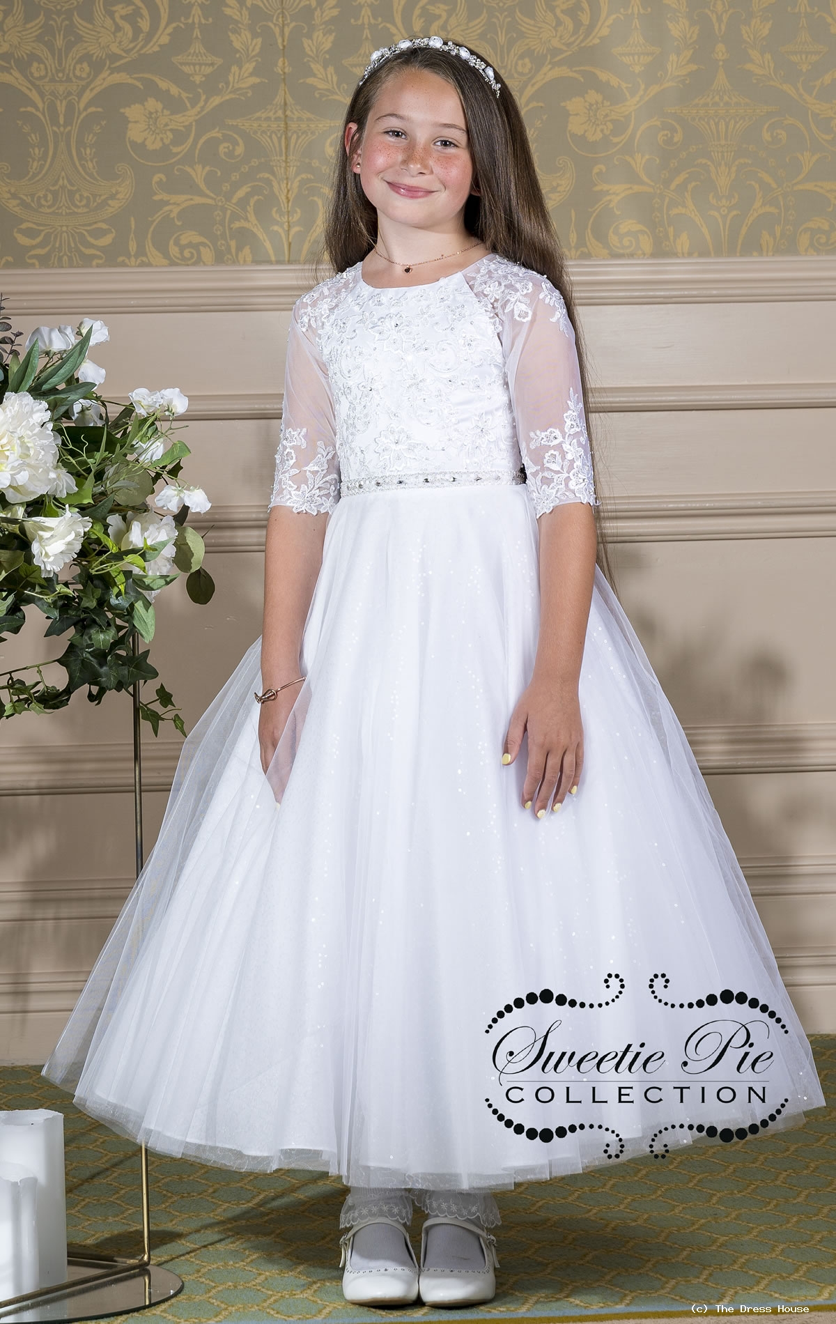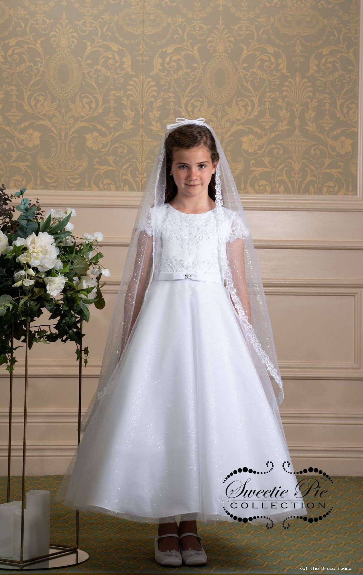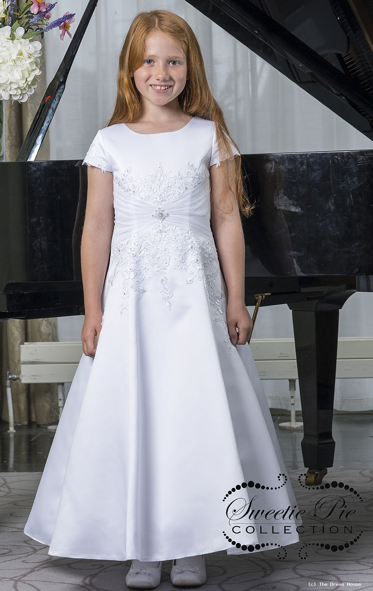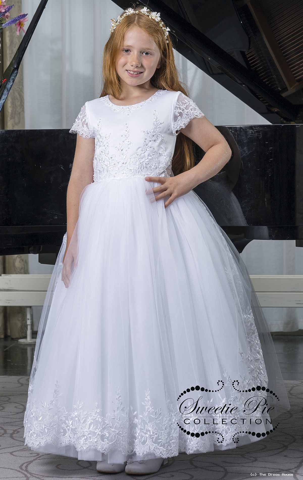 Communion Dresses from The Dress House Luton Exquisite communion dresses from our Sweetie Pie range feature lace satin and flower embellishments in a selection of modern cuts and lengths available in ivory or white. Each size comes in two lengths. 3082T Sweetie Pie Collection First Communion Dress 13999 27999.